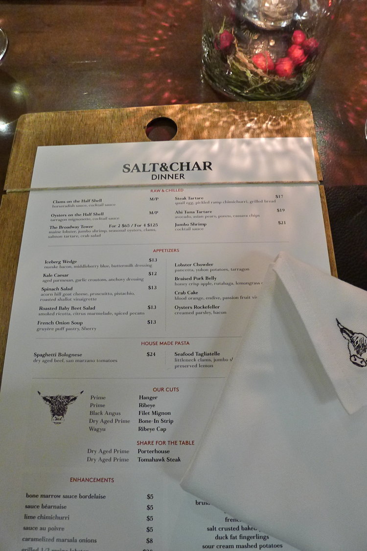 My hope with this feature is to not only praise Salt & Char for the wonderful experience we had there but to also urge others to give it a try and not be intimidated. The menu ranges with appetizers from $12- $22 and the entrees are priced between $22- $38 depending on the current offerings. Steaks are on the higher side but again, keep in mind the quality and the expertise put into these cuts, not to mention the size, with prices ranging from $48 for a 16oz ribeye to a $52 12oz. filet mignon and above. Also, new for the season is a large lunch and brunch menu featuring many of the dinner options as well as dry aged burgers and brioche French toast, with both a la carte options available as well as a prix-fixe menu for both meals. In addition, the team here hopes to have an updated bar menu available soon with finger foods and more casual offerings for those looking for a night in the bar/lounge area and not in the traditional dining room. Follow S&C on their Facebook page and on their website at saltandchar.com for updated event offerings including their upcoming Christmas and New Year’s Eve dinners.