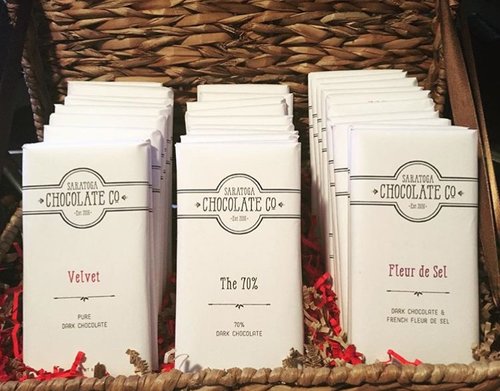 The Saratoga Chocolate Co. recently caught my eye on social media when a friend of mine posted a picture of their bars at Putnam Market, beautifully packaged in white paper with their logo stamped at the top in perfect black lettering. Little did I know that this friend, Anna Bowers who runs the exquisite Bar Vino in North Creek, gave Saratoga Chocolate Co. their first sale by offering their decadent truffles on the restaurant’s dessert menu. Trusting Anna’s knowledge of good food, I knew I had to find out more about this chocolate business with the excellent packaging. This is how the magical Tuesday happened.