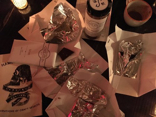Hank, Allison and I cozied up at a table at Hamlet & Ghost and quickly got to know each other, conversation coming naturally because of our mutual friends but also because these two are just so personable and genuine, exuding an infectious excitement for their product. Hank and Allison first met while Allison was ski patrolling at Gore Mountain and Hank was a local skier living in North Creek; a North Country love story. Fast forward to today and the couple, who also have a 3 year old daughter, balance work, parenthood, and their fledging new venture into the chocolate business, which launched just three months ago. Although new to the business itself, chocolate has been a passion of Allison’s for years (13 to be exact), a side hobby that she has cultivated and perfected into serious knowledge of the art, ingredients and consistency that go into creating a quality product.