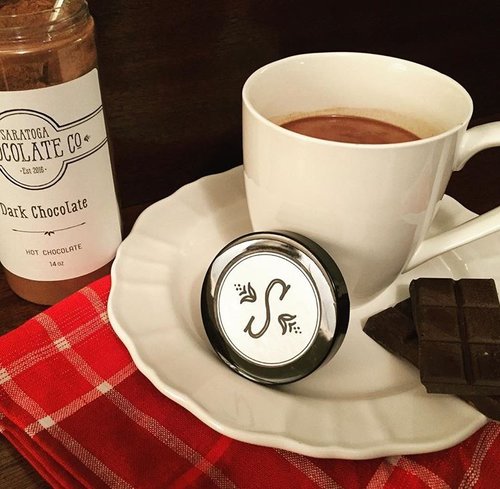 What’s my ideal Tuesday night? Probably sipping on a creamy, dark hot chocolate while snow falls outside and recklessly tearing into multiple perfectly packaged bars of hand poured chocolate and bark in various flavors, all topped off with a hazelnut and frangelico truffle. Well, it happened to me this week and it was glorious- thanks to Hank and Allison Rose of Saratoga Chocolate Co.